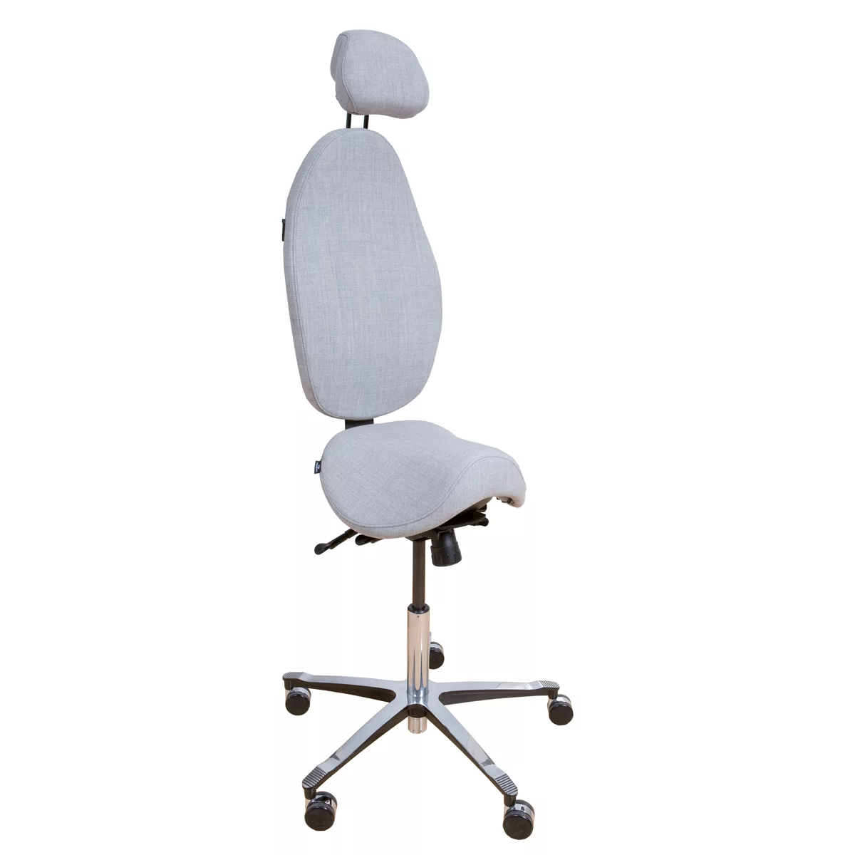 L’assise du High5, de type « selle », permet d’adopter une posture dynamique et une ouverture du bassin différente de celle proposée par une assise conventionnelle. Néanmoins, la présence d’un vrai dossier, d’un appui-tête et d’un mécanisme de bascule, soutiennent votre dos lorsque la position active se fait trop contraignante et que votre corps a besoin de repos.