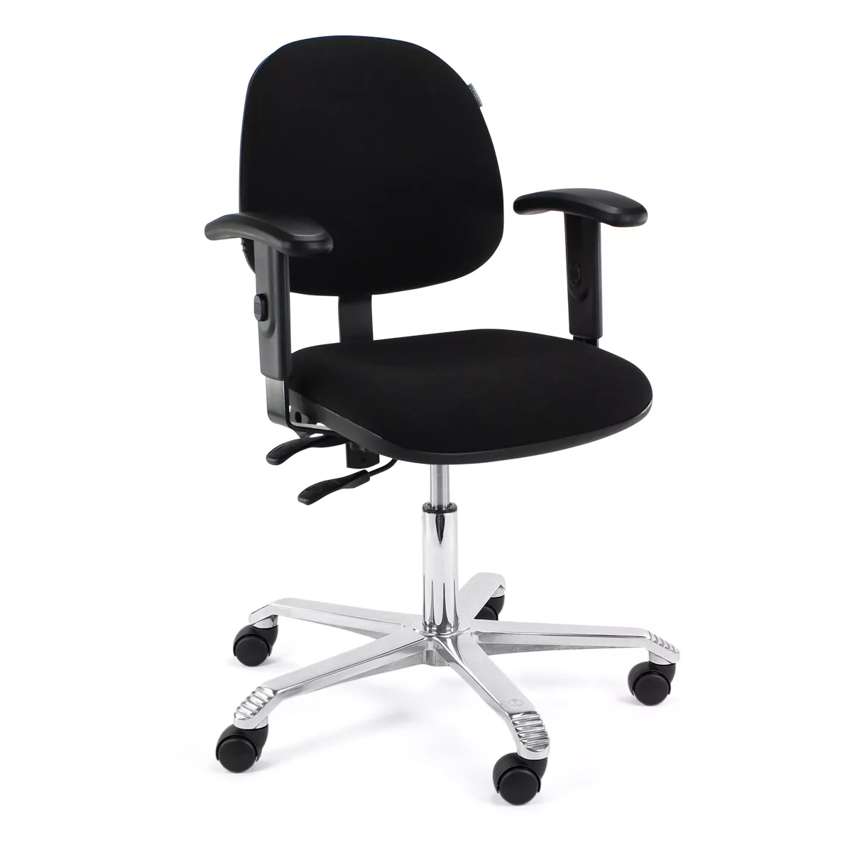 Rapprochez-vous ensuite de votre bureau, et si cela vous est possible, réglez la hauteur de celui-ci de sorte à ce que vos bras puissent reposer sur le plan de travail tout en restant sur vos accoudoirs. Si la hauteur de votre plan de travail n’est pas modifiable, augmentez la hauteur d’assise de votre siège et placez un repose-pieds afin de garder l’ouverture des genoux à un angle de 90 degrés.