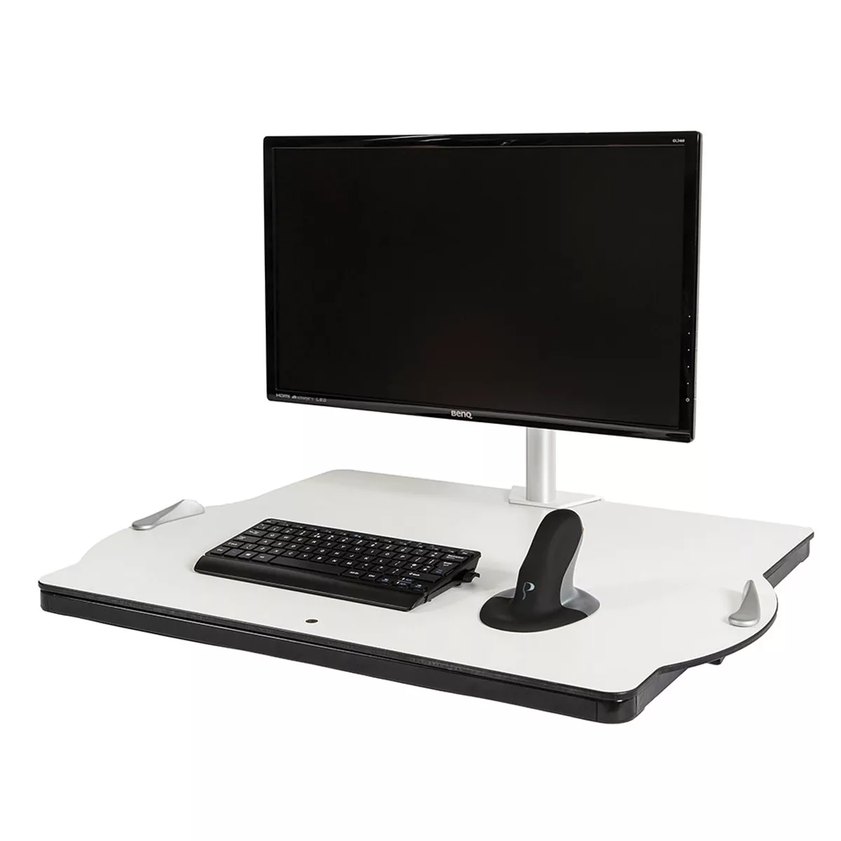 La plateforme de travail assis-debout Oploft permet d’alterner les postures en toute simplicité, afin de réduire les douleurs et la fatigue, mais également de gagner en productivité. Le réglage de la hauteur se fait sans effort et de manière intuitive à l’aide des poignées situées de chaque côté de la plateforme, sur une grande amplitude.