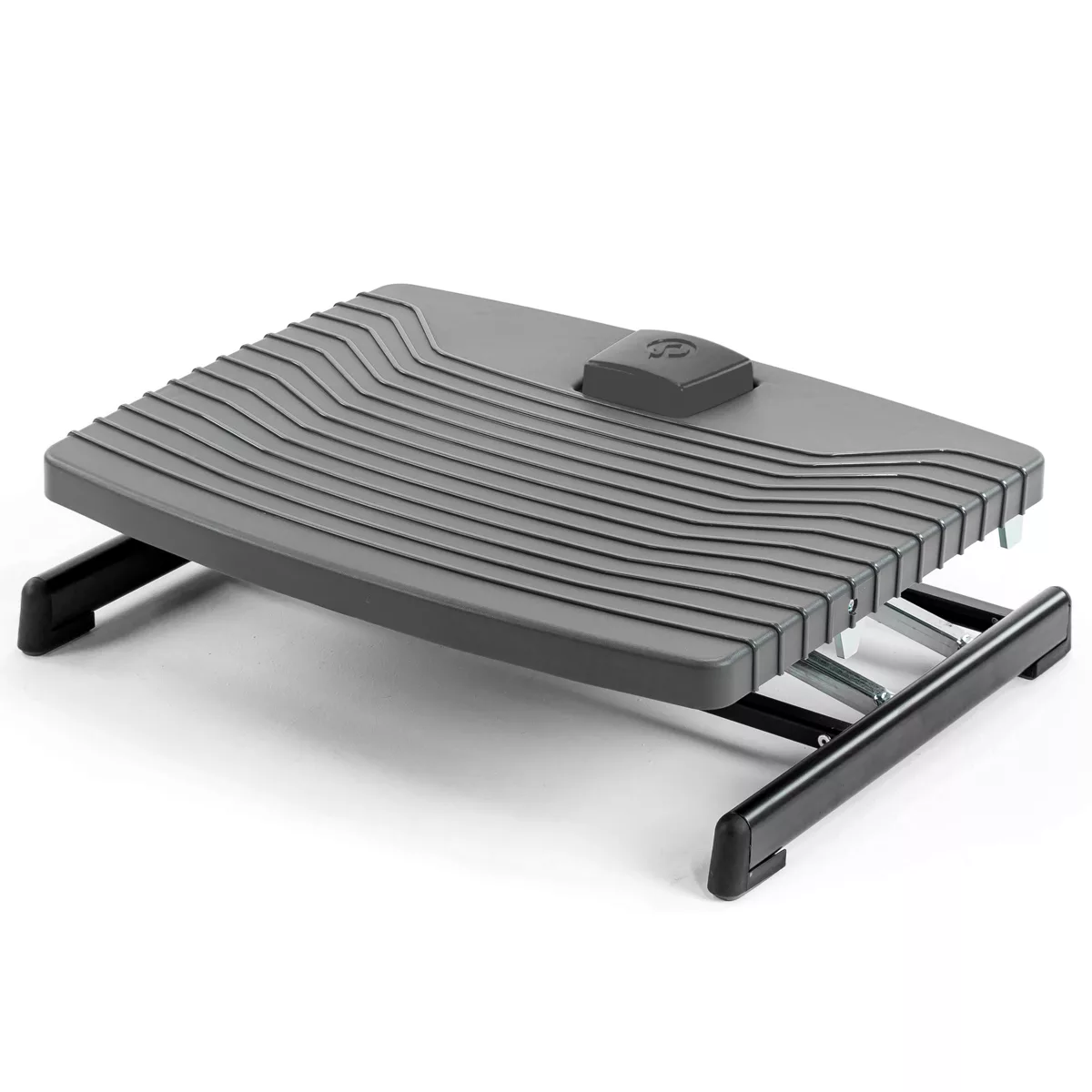 La position des pieds est également un élément à prendre en compte pour adopter une posture saine et équilibrée. Lorsque l’on est assis, il est important de s’assurer que nos pieds reposent naturellement à plat sur le sol, ce qui permet d’avoir une meilleure tenue, mais également de favoriser notre circulation sanguine. Dans le cas où votre plan de travail n’est pas réglable en hauteur, et qu’il se trouve être trop haut ou trop bas par rapport à votre position assise, l’utilisation d’un repose-pieds réglable s’avère utile. Il offre en effet une posture détendue et équilibrée, et compense ainsi l’inéquation de la hauteur d’assise.