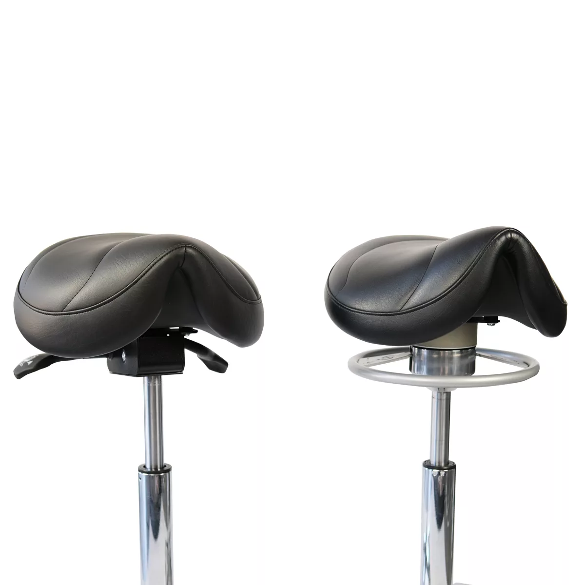 L’assise selle du siège assis-debout Amazone offre un format plus compact que celui de son cousin le Jumper et s’adapte donc mieux aux bassins plus étroits.