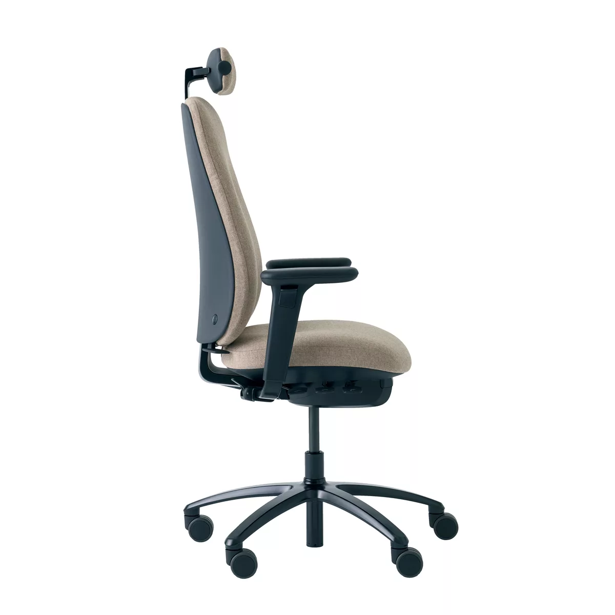 L’utilisateur bénéficie d’un soutien lombaire quasi permanent et la pompe lombaire, intégrée dans les courbes du dossier de façon discrète et accessible, permet d’adapter le maintien en fonction de la cambrure de l’utilisateur. Le coussin Tvedt donne un soutien plus prononcé au niveau des omoplates et le soutien cervical permet de trouver la position idéale pour soutenir la tête et ainsi soulager les cervicales.